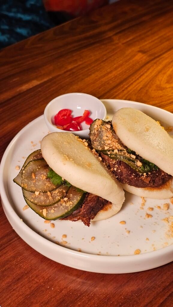- Baos de bondiola braseada: suaves como una nube, con cerdo que se desarma. El chile picante pedilo a parte (¡por que pica de verdad!).