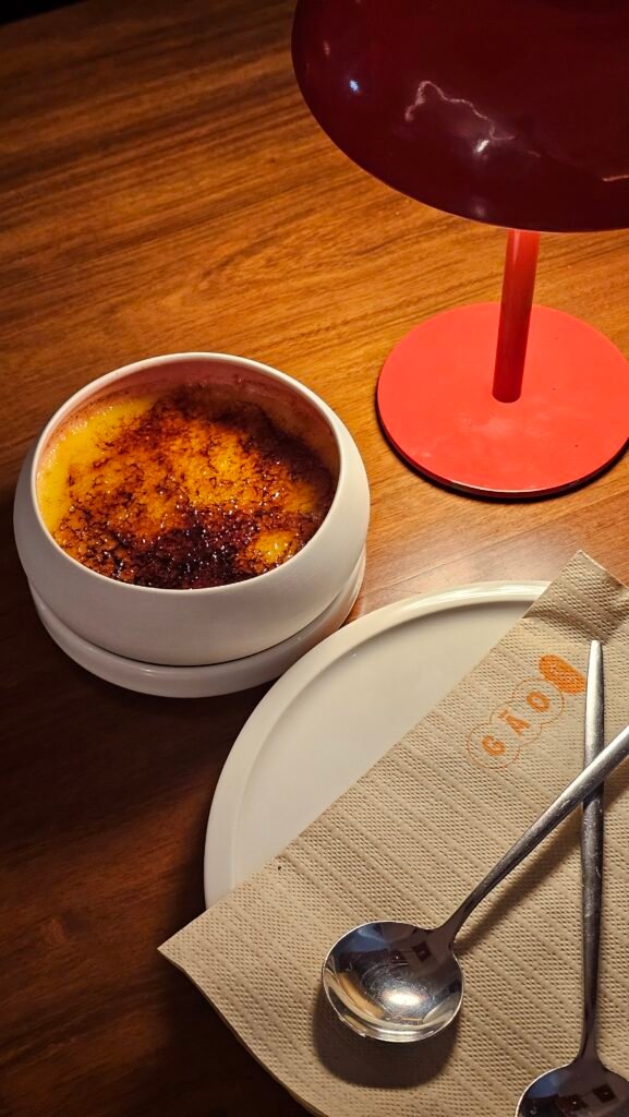 Optamos por la crème brûlée de sésamo, suave y con un sabor distinto a todo lo que podés encontrar en otro restaurante.